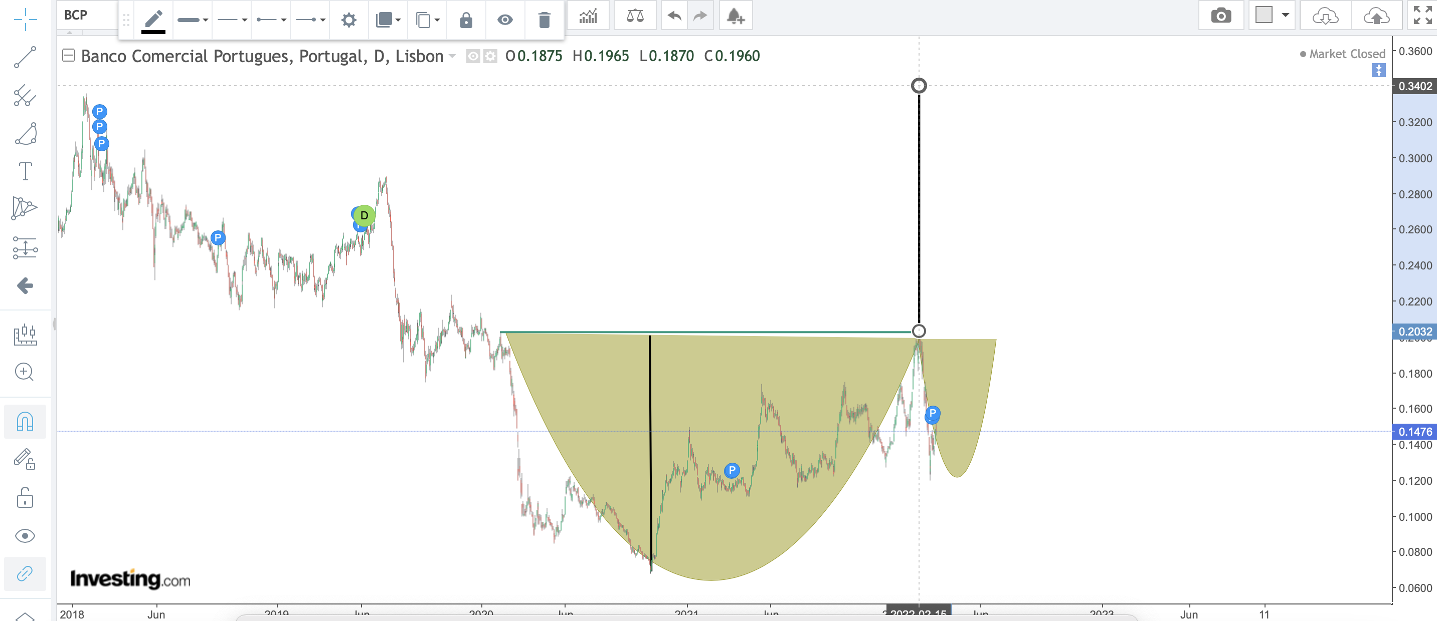 a tendência de baixa de longo prazo viewtopic.php?p=1726046#p1726046, se passar os € 0,20, que vem tentando há algum tempo....