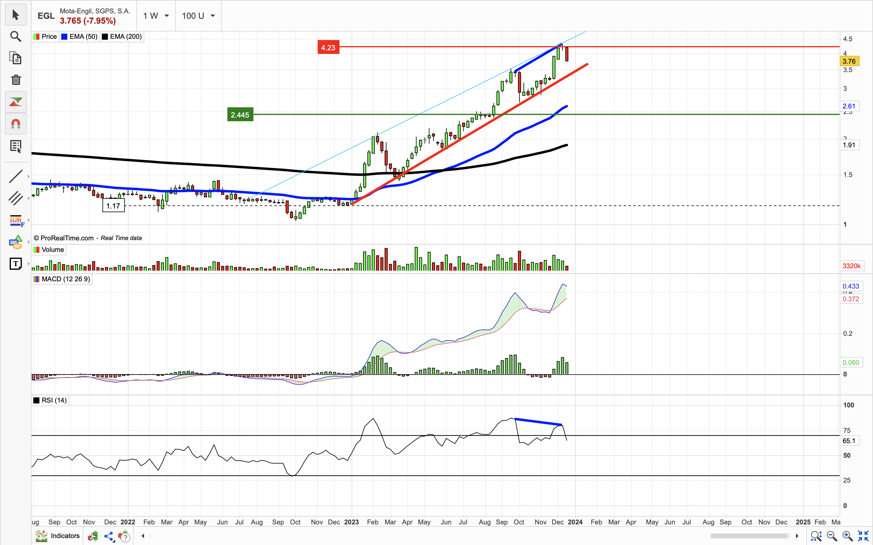 Sim, se perder os 3,80 do pequeno suporte que lá está, no fecho, é ir preparando para entradas nos 3,40/3,30, e ainda se percebe melhor porquê (basta olhar no teu gráfico para início de Outubro). Mas veremos o fecho