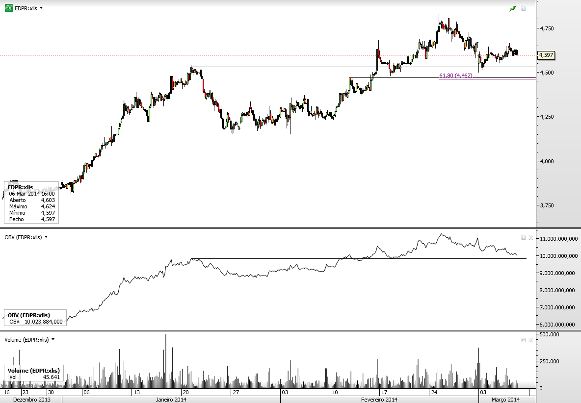 2. Fez o ultimo mínimo relativo a 4,48. Um suporte muito fraquito, foi o ultimo valor a segurar a cotação para cima.