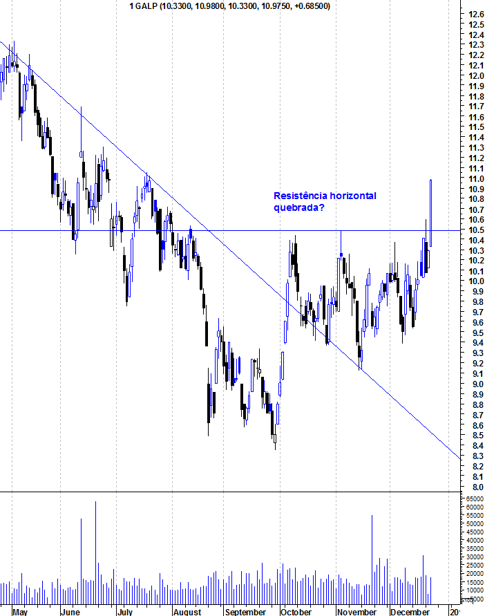 A Galp poderá ter dado hoje um enorme sinal de força com esta enorme vela branca que quebra a resistência horizontal.