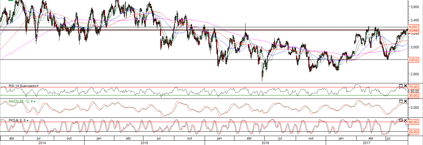 Titulo perto dos máximos recentes nos 3.30. Indicadores técnicos em níveis elevados