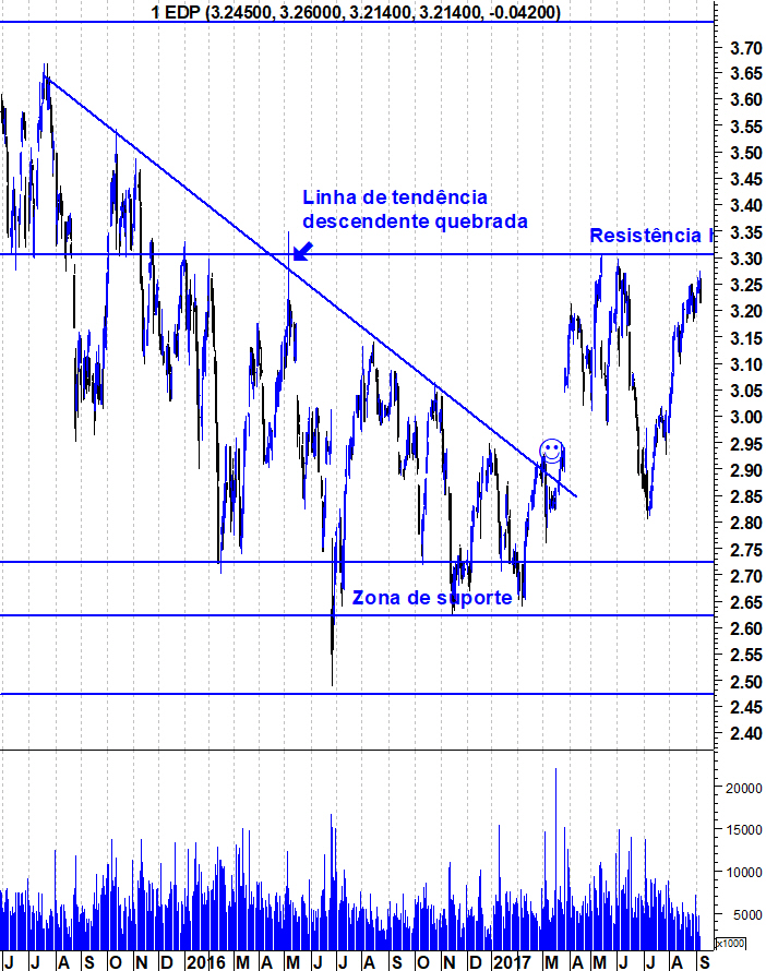 Troquei a EDPR, na qual depositava grandes esperanças, pela EDP. E em boa hora o fiz. Esta, sim, está em bull desde Julho de 2017. Claramente. Sem titubear.