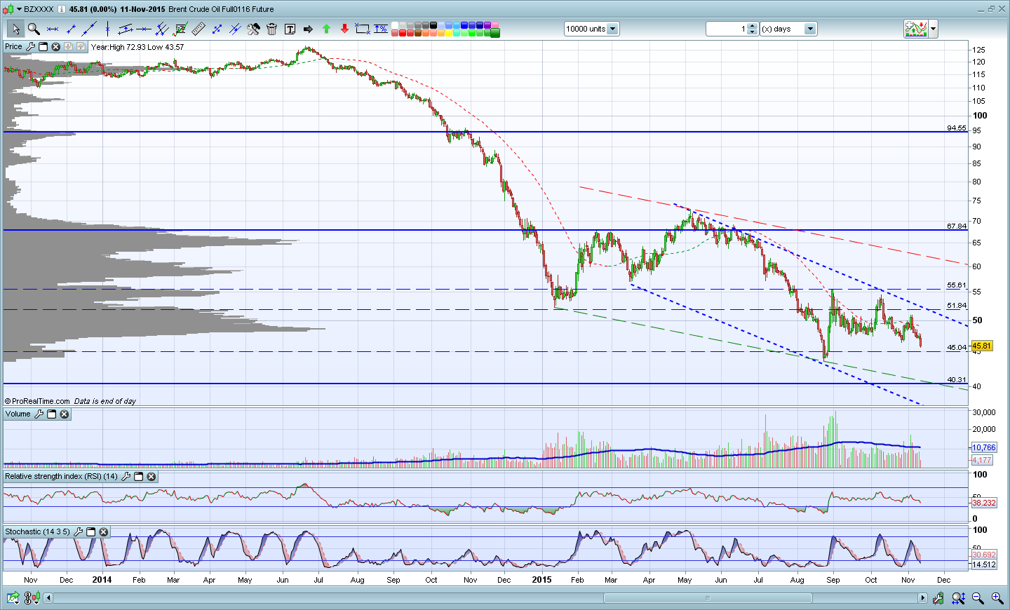 BRENT está nos 44.09 USD com uma queda diaria de 3,88%. Já muito perto dos minimos anteriores nos 42.