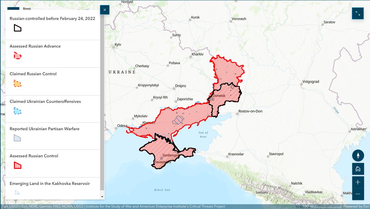 gradual advances of Ukrainian troops in the south, in particular in areas surrounding the cities of Berdiansk and Melitopol in southeastern Ukraine.