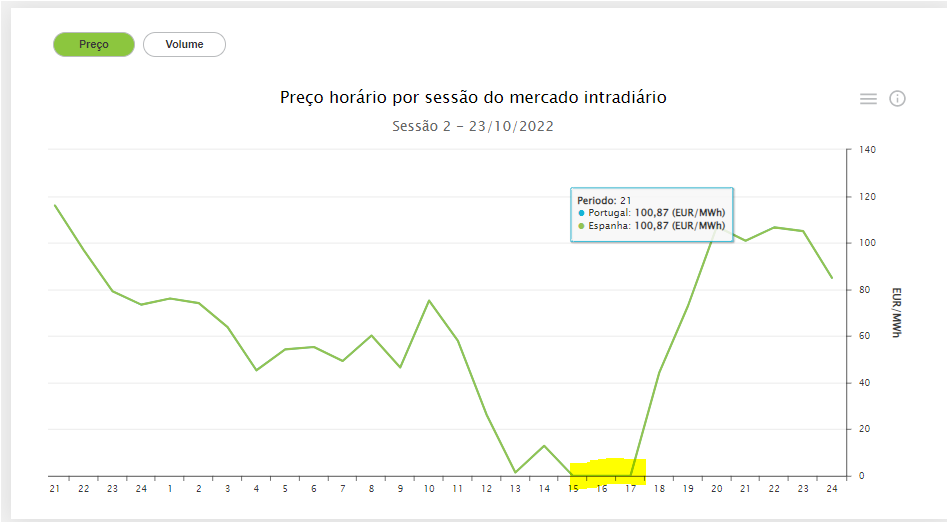 Para amanhã, a energia elétrica adquirida pelo SEN (Sistema Eléctrico Nacional) no MIBEL (preço grossista), entre as 15 horas e a 17 horas, será a custo zero, leram bem, zero euros. Os ganhos ficam para a casa.
