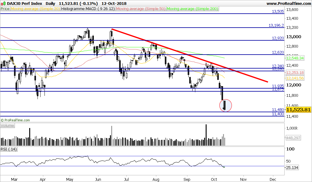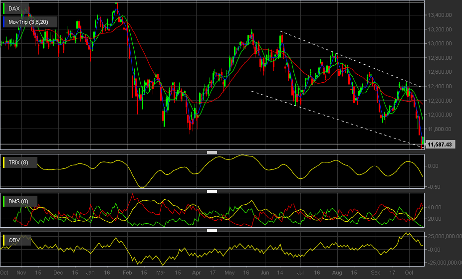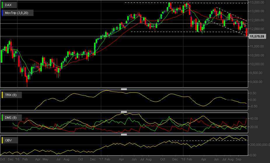 O DAX encontra-se perto de poder quebrar em baixa a MM200 semanal nos 11460.