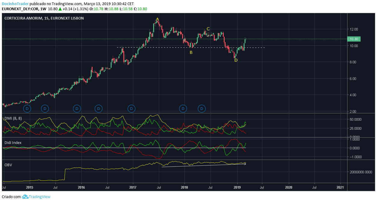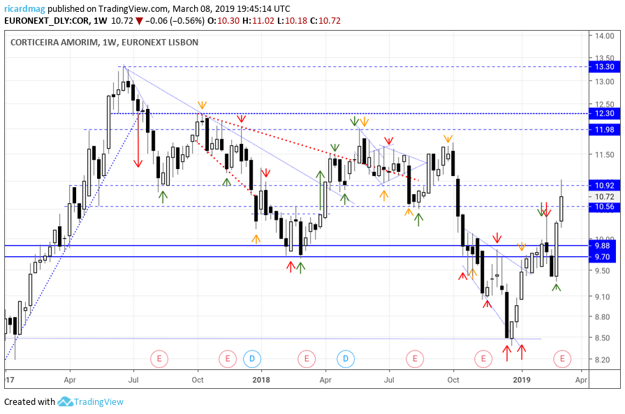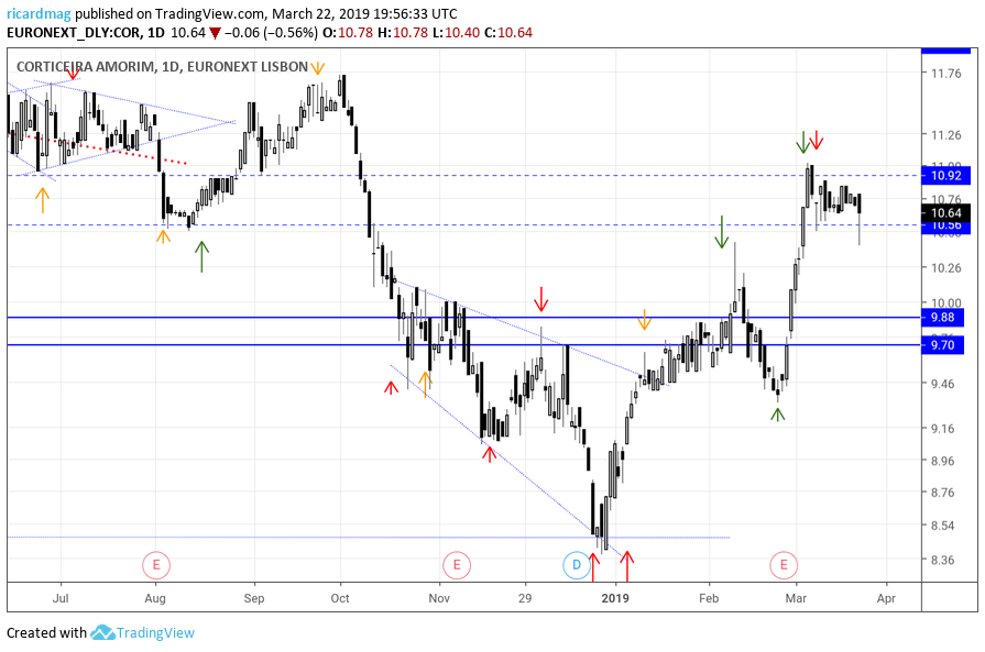 Não sabemos se está em formatação um topo, mas se for, poderemos traçar uma Ltd no médio/longo prazo. O cenário ideal seria retrair ou consolidar e quebrar em alta a zona dos 11€.