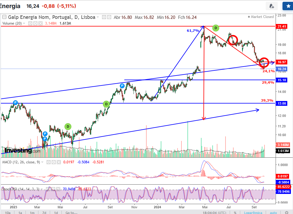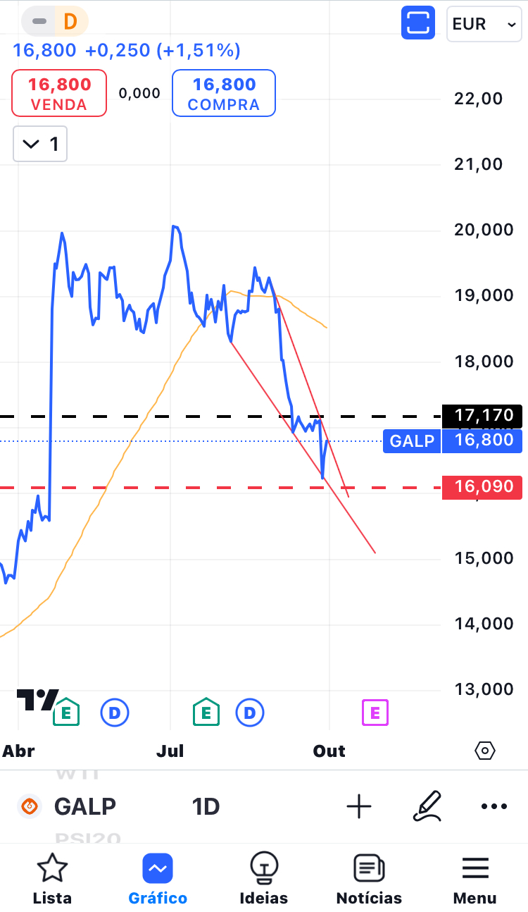 A IBS numa situação com algumas semelhanças com a Galp, reagiu na linha vermelha que tracei para a Galp, por isso acho que se pode considerar os 16,09 como uma possível linha de suporte.