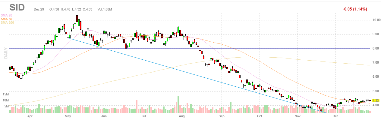 Para lá do gráfico semanal da SID junto também o gráfico semanal do minério de ferro, que após uma queda violenta aparenta, também estar a reagir à zona actual