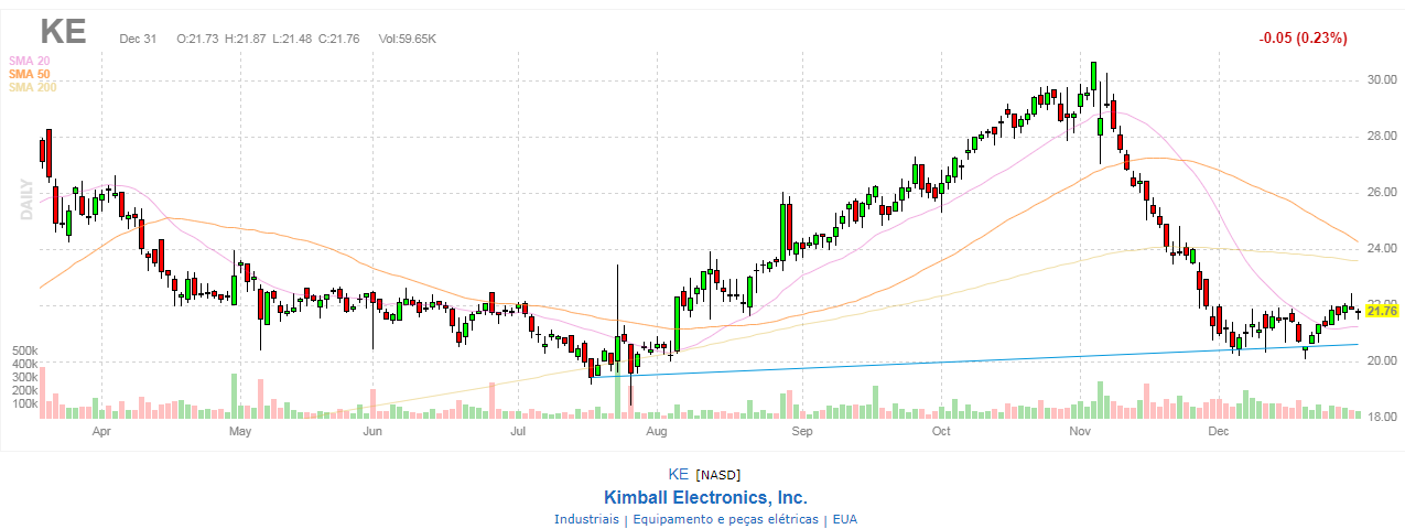 Na minha humilde opinião, a Kimball Electronics, Inc. (KE) fundada em 1961 e que fornece serviços eletrônicos por contrato e serviços de manufatura diversificada para clientes nos mercados finais automotivos, médicos, industriais e de segurança pública é uma empresa a acompanhar de perto. Apresenta fundamentais muito equilibrados e gera lucro, para além de desenvolver a sua atividade nos Estados Unidos, China, México, Polônia, Romênia, Tailândia e Vietname.