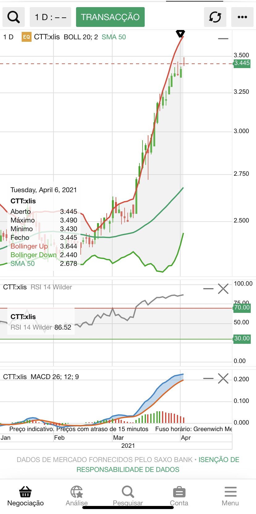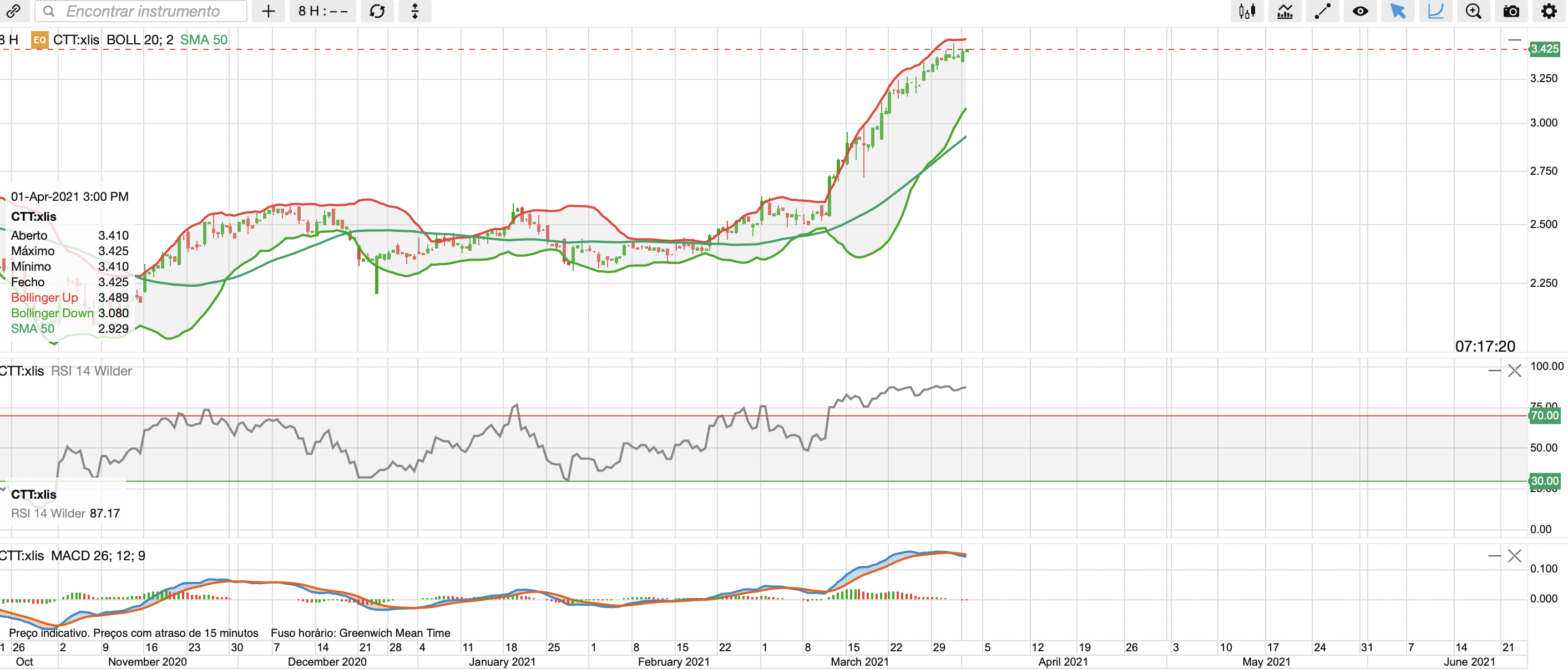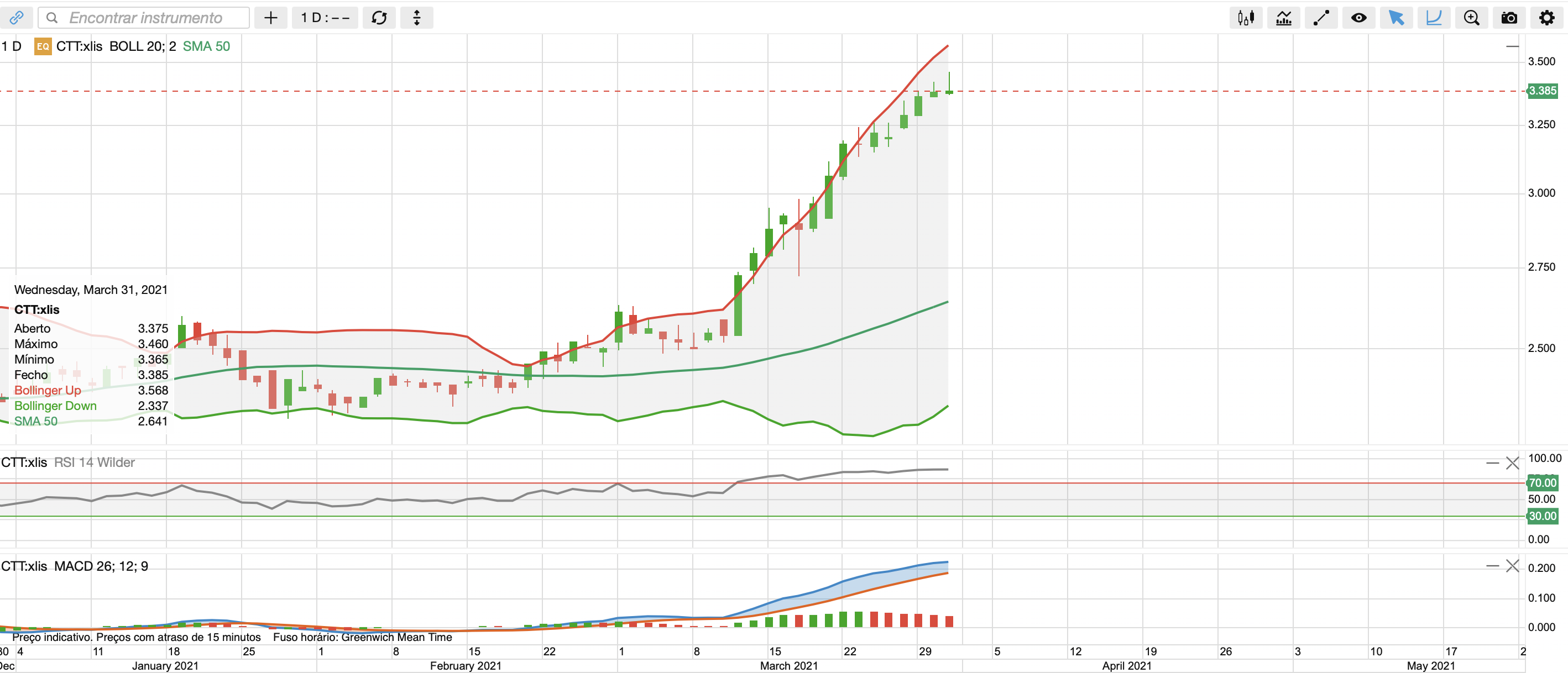 Ctt a continuar a escalada em maximos de mais de um ano, por esta subida contínua andam aqui investidores maiores, alguns a fechar posições e outros a amealhar.