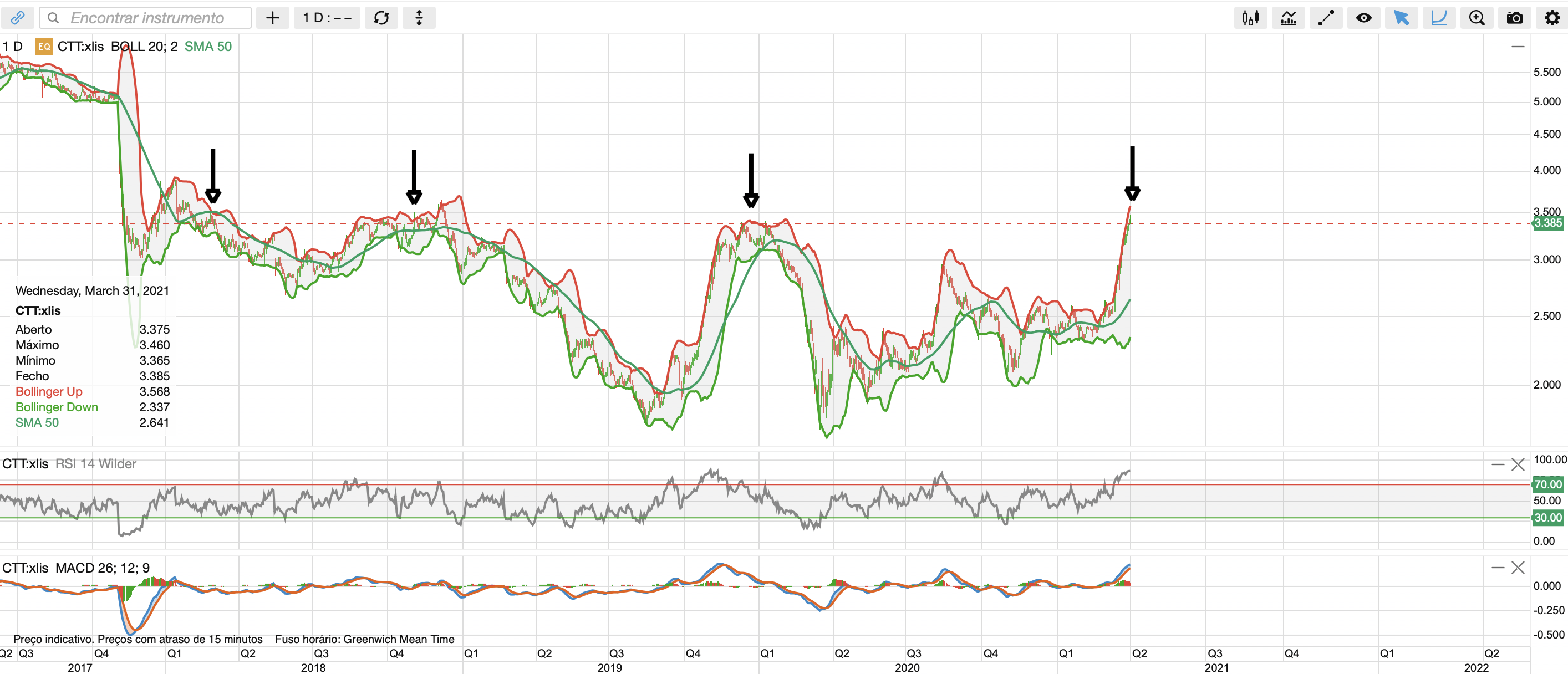 CaixaBank BPI sobe avaliação dos CTT em 20% com melhoria dos resultados. Preço alvo 3,50, o preço de intervalo maximo que eu já aqui tinha falado há uns dias atrás, vamos aguardar.