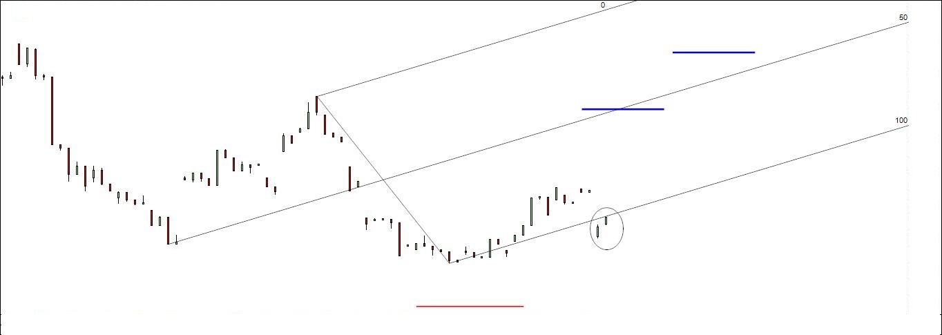 1º target atingido. caso o preço chegue ao 2º target, será de largar no mar uma boa parte da carga que resta. qt ao 3º, é uma casmurrice minha que tem por objectivo, neste caso, experimentar a validade da modified-schiff por ser a 1ª vez que as uso num negócio, e tb dada a relevância dos pivots que compõem esta em particular. em relação a estes, fiquei na dúvida sobre quais deveria ter escolhido: pivot B - o 1º ou o 2º low a partir do qual se iniciou a subida; pivot c - o 1º ou o 2º high a partir do qual se iniciou a descida. em ambos os casos escolhi os 1ºs, e seja como for, a orientação não seria mt alterada.
