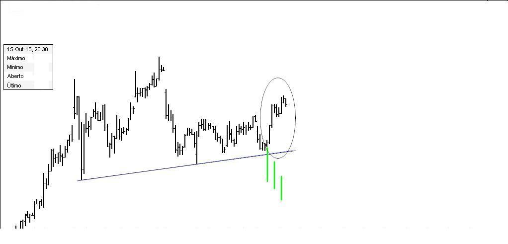 A partir daqui as velas falam por si, o preço ainda fez um higher high, mas acabou por descambar por aí abaixo.