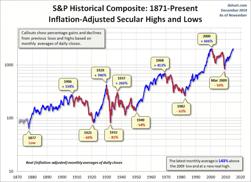 Se em vez de pensarmos num bull market "velho e gordo" no S&P500, com 5,5 anos e que precisa de um forte Bear market em 2015 ou 2016 (com correcção superior a 20%), se em vez disso, pensarmos num Bull Market secular que irá de 2009 a 202.., e que vai ter esse mesmo periodo correctivo Bear mas como um intermezzo na progressão ascendente dilatada no tempo.
