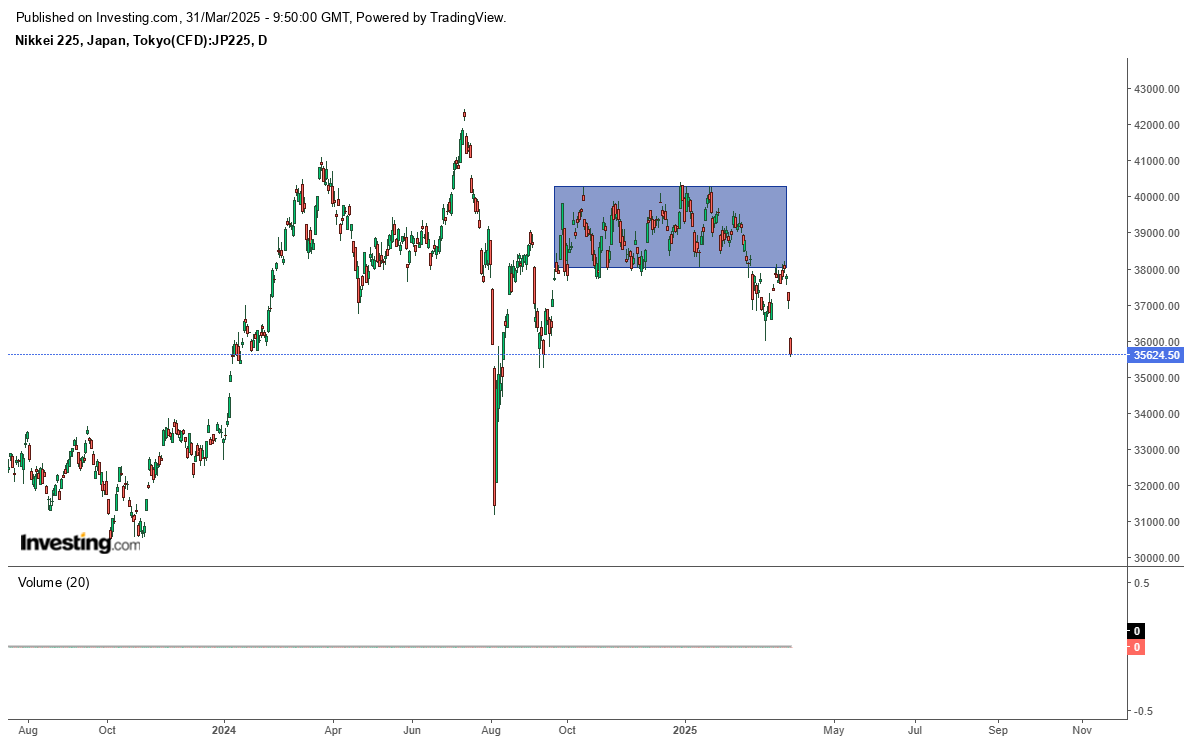 O SPX perde 8% assim como o Nasdaq. Menos perde a B3 em São Paulo, nem chegou a 4% mas o Nikkei 225 perde 6,5%