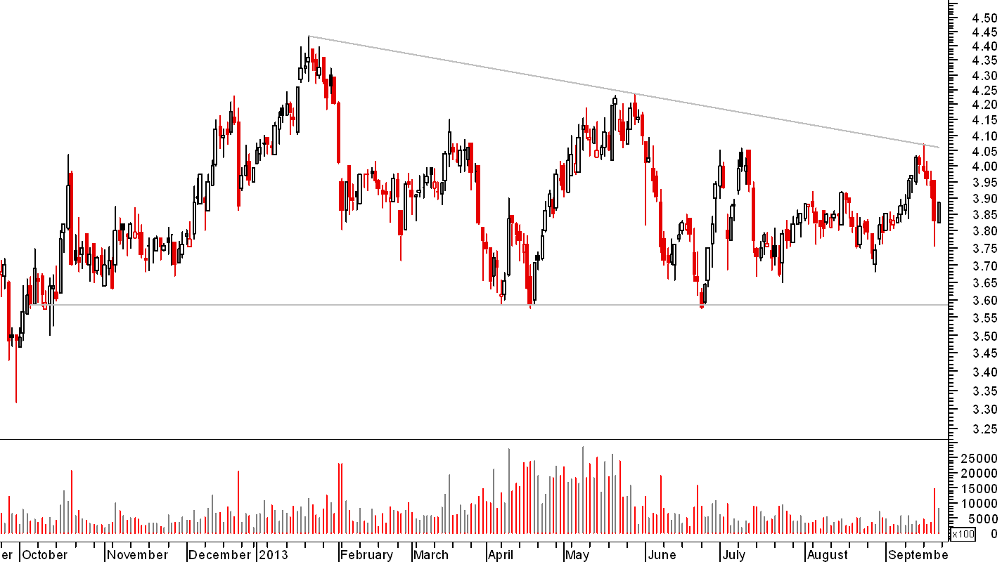 Neste momento precisava de mostrar força, ou seja, um novo máximo relativo com volume acima da zona dos 4,2 e no melhor dos cenários encetar uma aproximação à zona de resistência - 4,45!