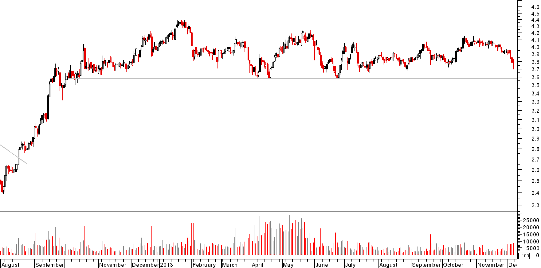 Para mim só ficará interessante quando se aproximar dos máximos de 2013, quando superar os 4.32!