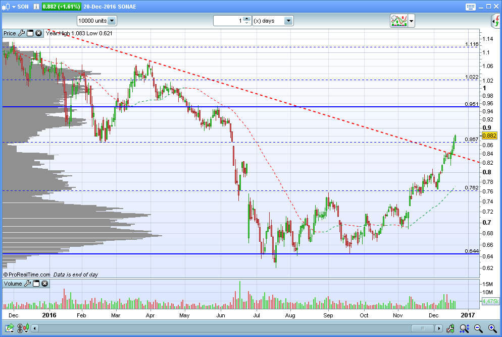 Aliás, acho que a SON já deveria estar cotada mais acima, bem acima de 1 euro. Não me admirarei se nos tempos mais próximos chegar e estabilizar pelos 1,20/1,50.