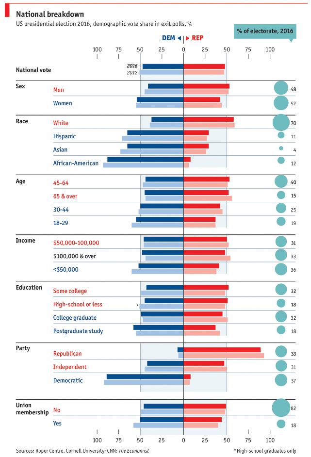 Trump fez uma campanha que racionalmente analisando é o contrario do que ele fez toda a vida : contratou ilegais, fabricou e comprou no estrangeiro e como rico e poderoso que é ,oprimiu os pobres e fracos e pasme-se ou não, todos estes votaram nele.