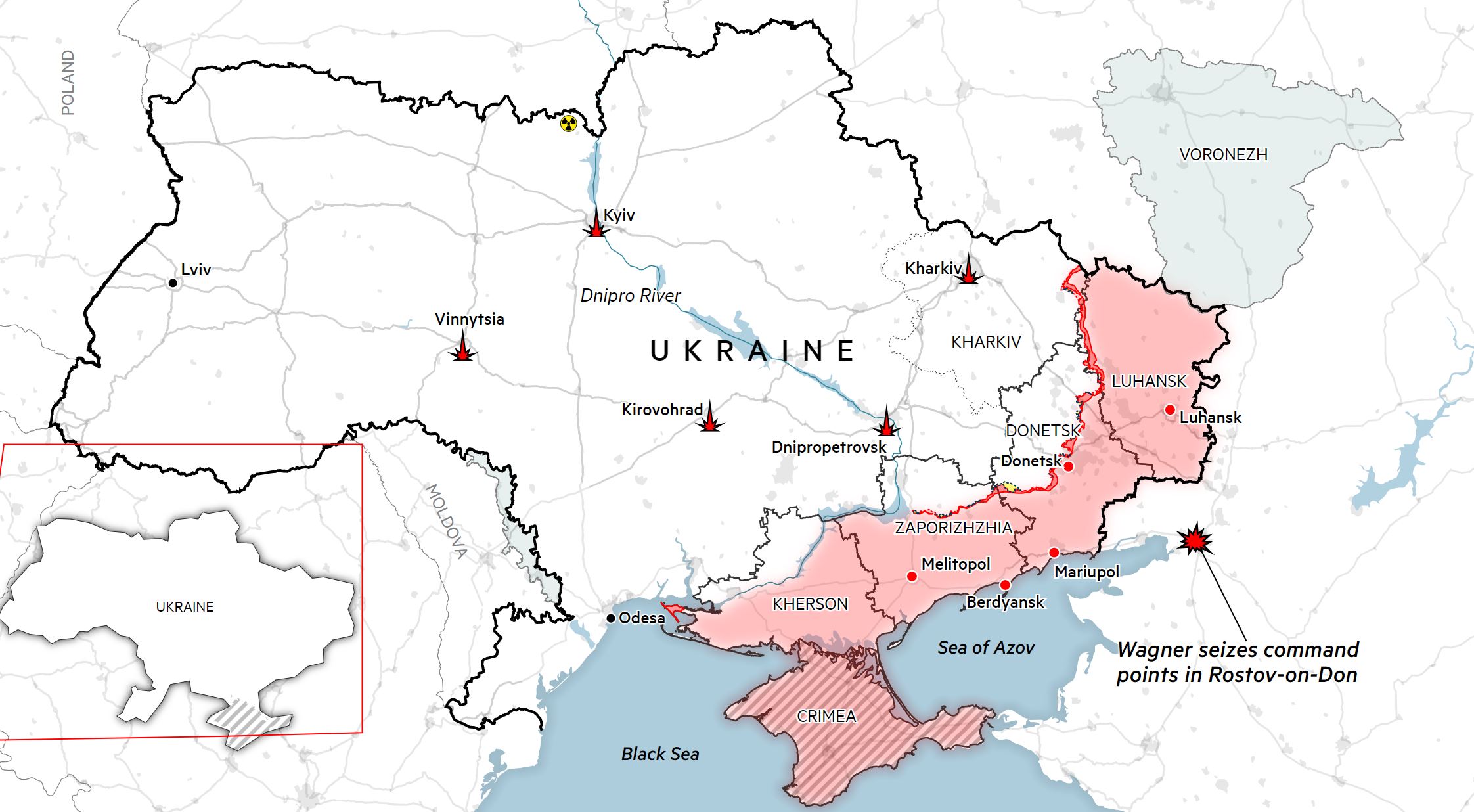 O Grupo Wagner saiu do leste da Ucrânia, entrou na Rússia pelo sul do país e começou a subir para Moscou com a retórica do motim.