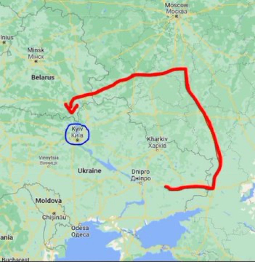 Depois, virou a oeste para Belarus, e agora está a pouco mais de 100 km de Kiev.
