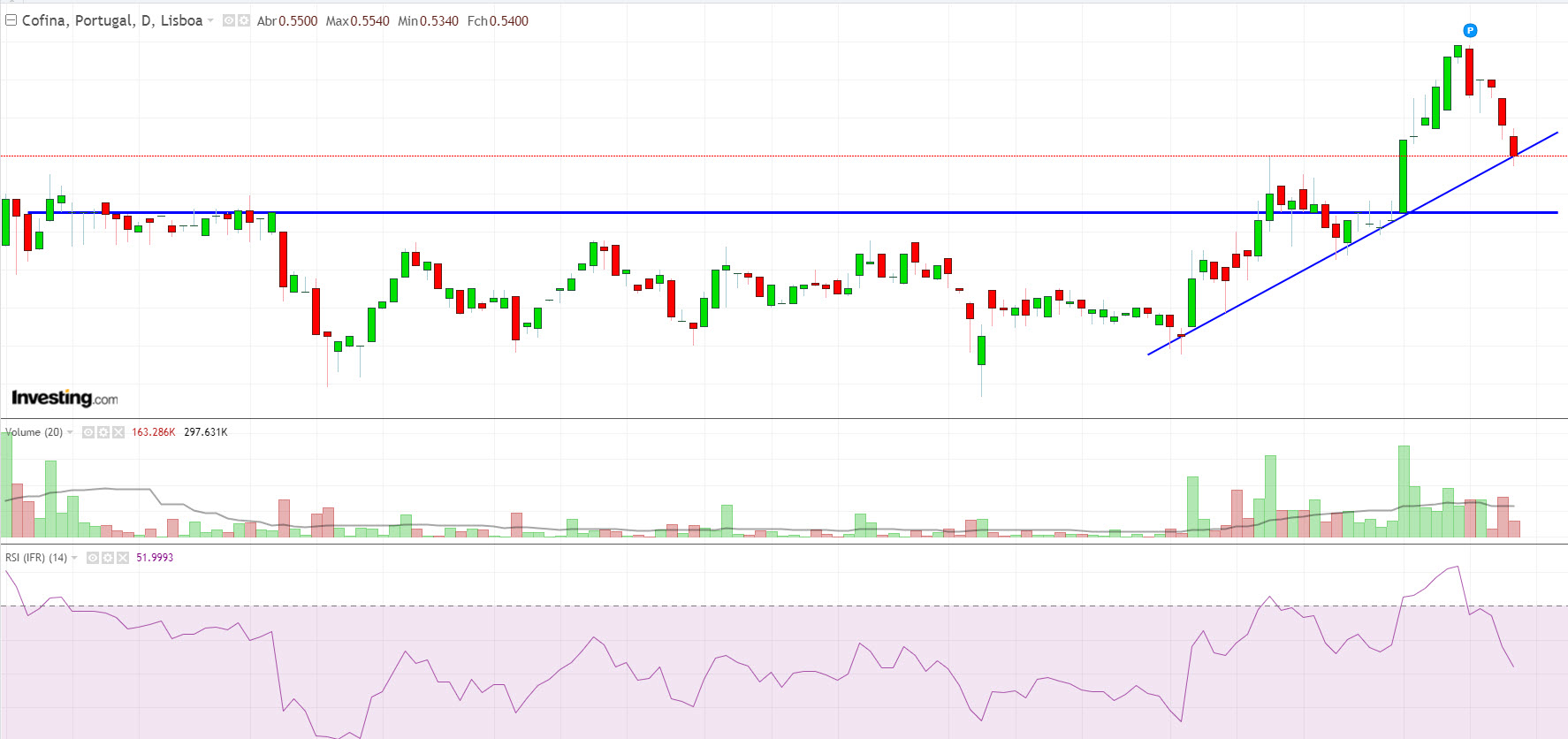 pode reagir em alta aqui nos 0.544€.