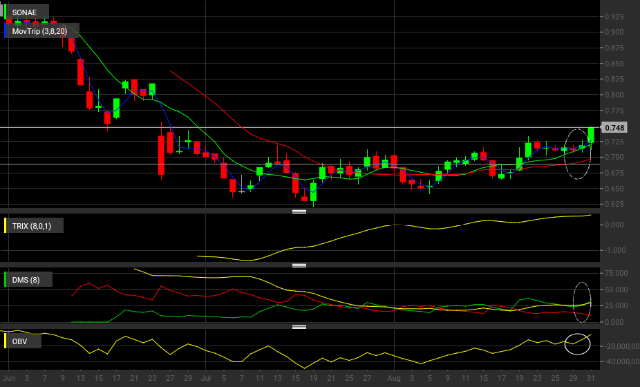 Sonae a dar um respiro das quedas mas com bom ponto de entrada para uns tiros de curto prazo,sinal activado hoje com a alinhaçao de todos os indicadores e encarteiramento do OBV com volume pelo gráfico diário e 4h.Alvos nos 0.80-0.87 cts.