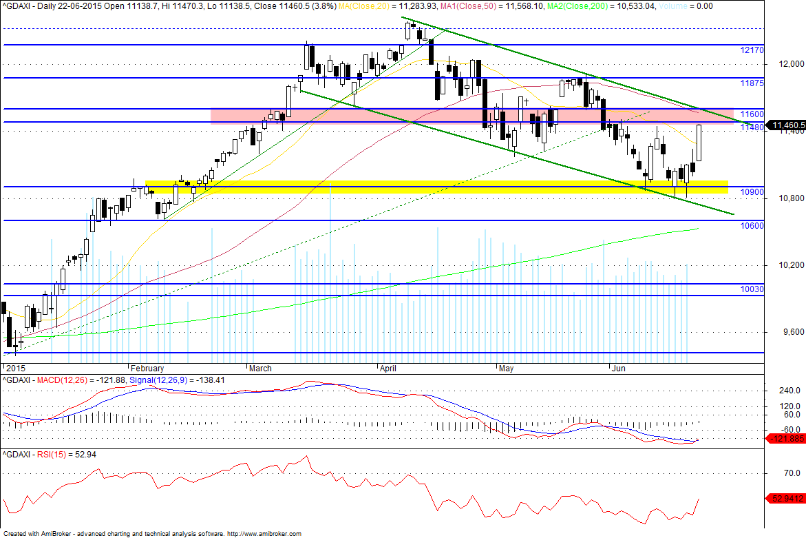 Se o DAX, na abertura dos states, transpõe a resistência dos 11400 pts... Fica com caminho livre até á zona dos 11600 pts...