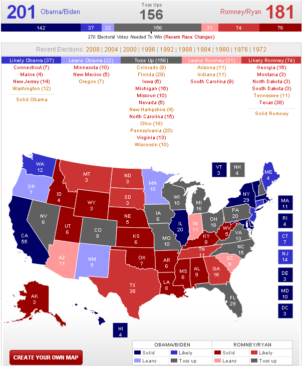 Com um cenário renhido desta maneira até dá pena imaginar os sacos de notas em publicidade política que se vão despejar em cima dos eleitores dos 4-6 estados onde ainda há dúvidas sobre quem ganha.
