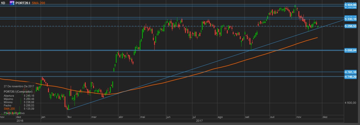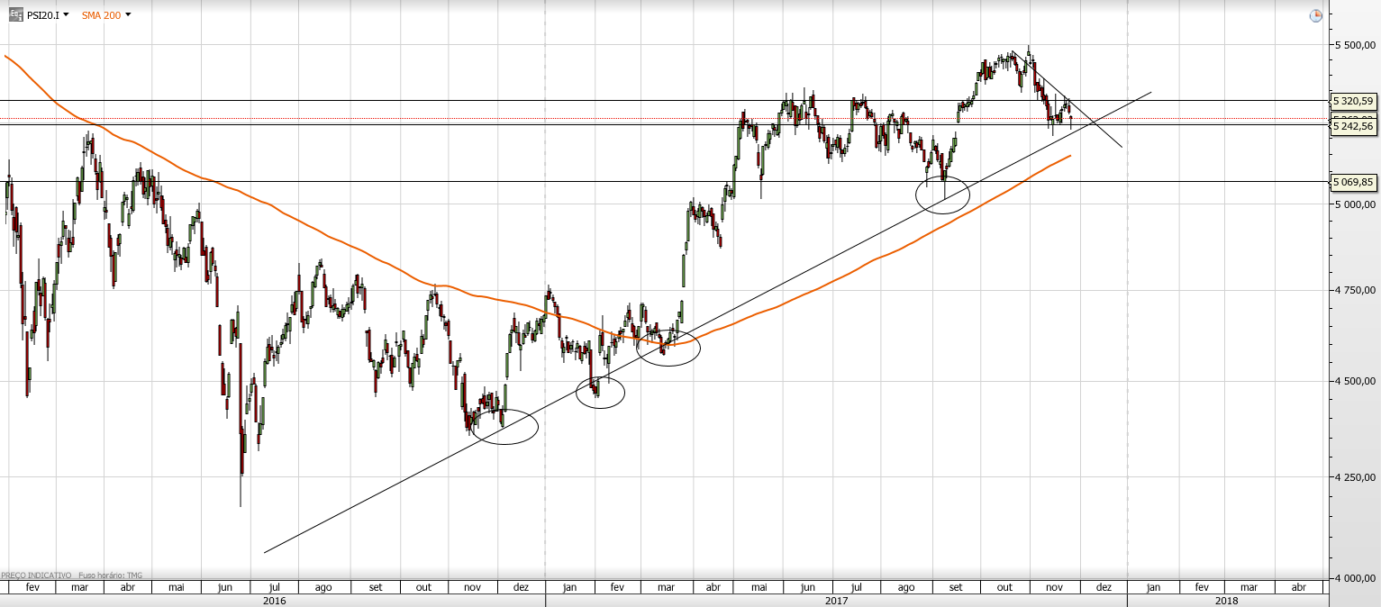 Para já mantem-se exatamente na linha da LTA com os BULL para já a segurarem o suporte na zona dos 5250.