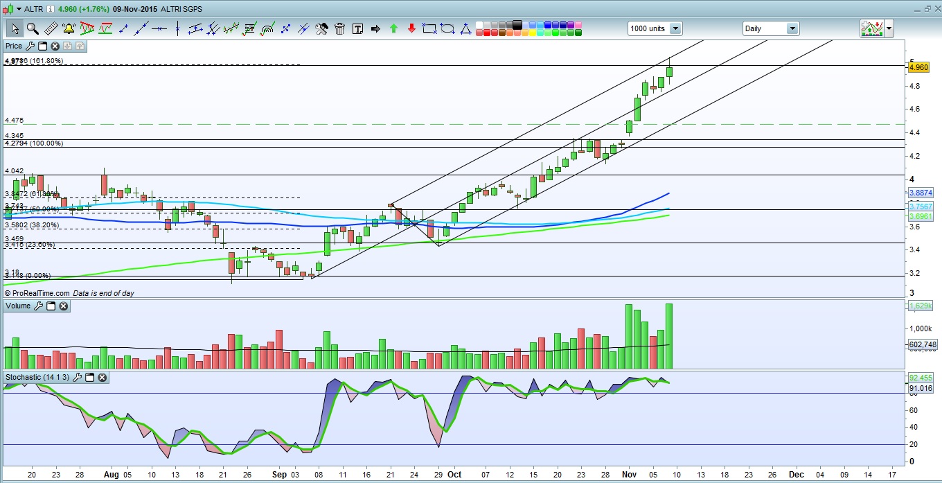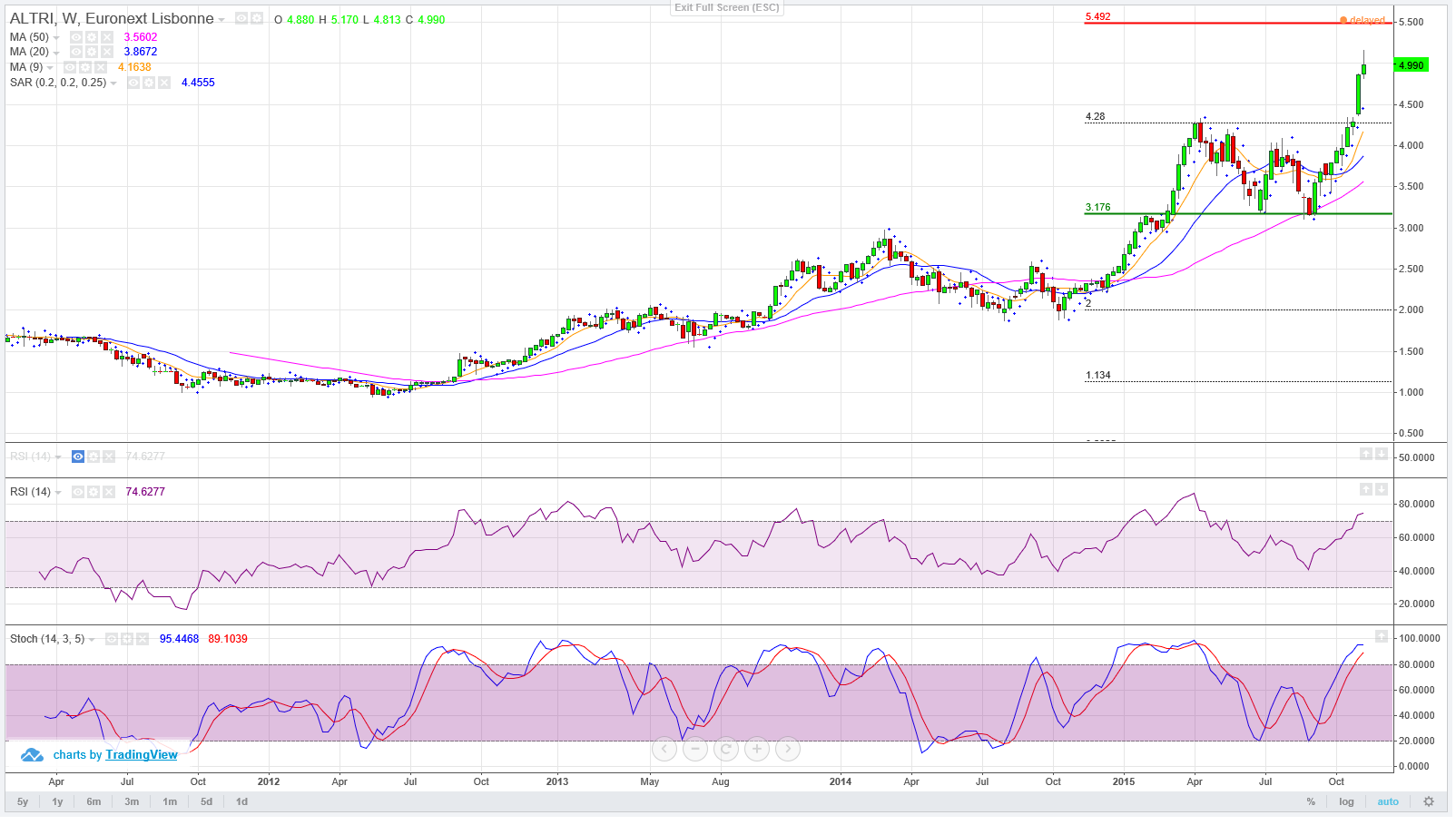 Como costumo dizer nas acções que estão "bullish" e que estão em máximos históricos, o facto de não haver referências em termos técnicos (já que estão em terra de ninguém), quem está de fora deve esperar pelas retracções para entrar. Haverá um dia em que uma retracção marcará o final do "Bull Market"? Sem dúvida, mas para isso terão que existir os stops.