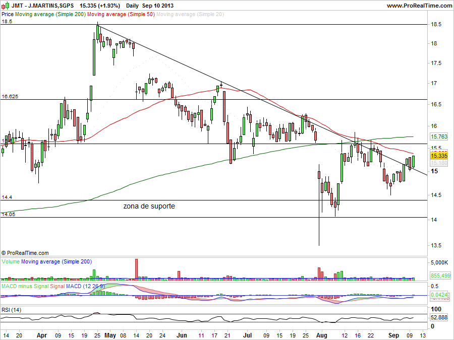 Um fechozinho acima de €15,00 seria muito simpático. Analisando a LTD que está a fazer sombra ao título, diria que o próximo toque seria na zona dos €15,30-€15,35. Concordam?