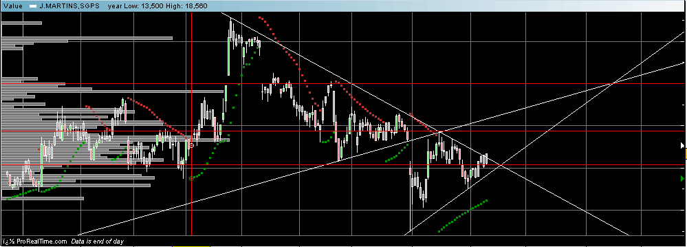 Tens toda a razão, e a conjuntura interna/externa pode ajudar os ursos, mas por outro lado estamos a falar da Jerónimo martins, os factores negativos podem dar força a este papel, se isso não acontecer está comprovada a mudança de sentimento.