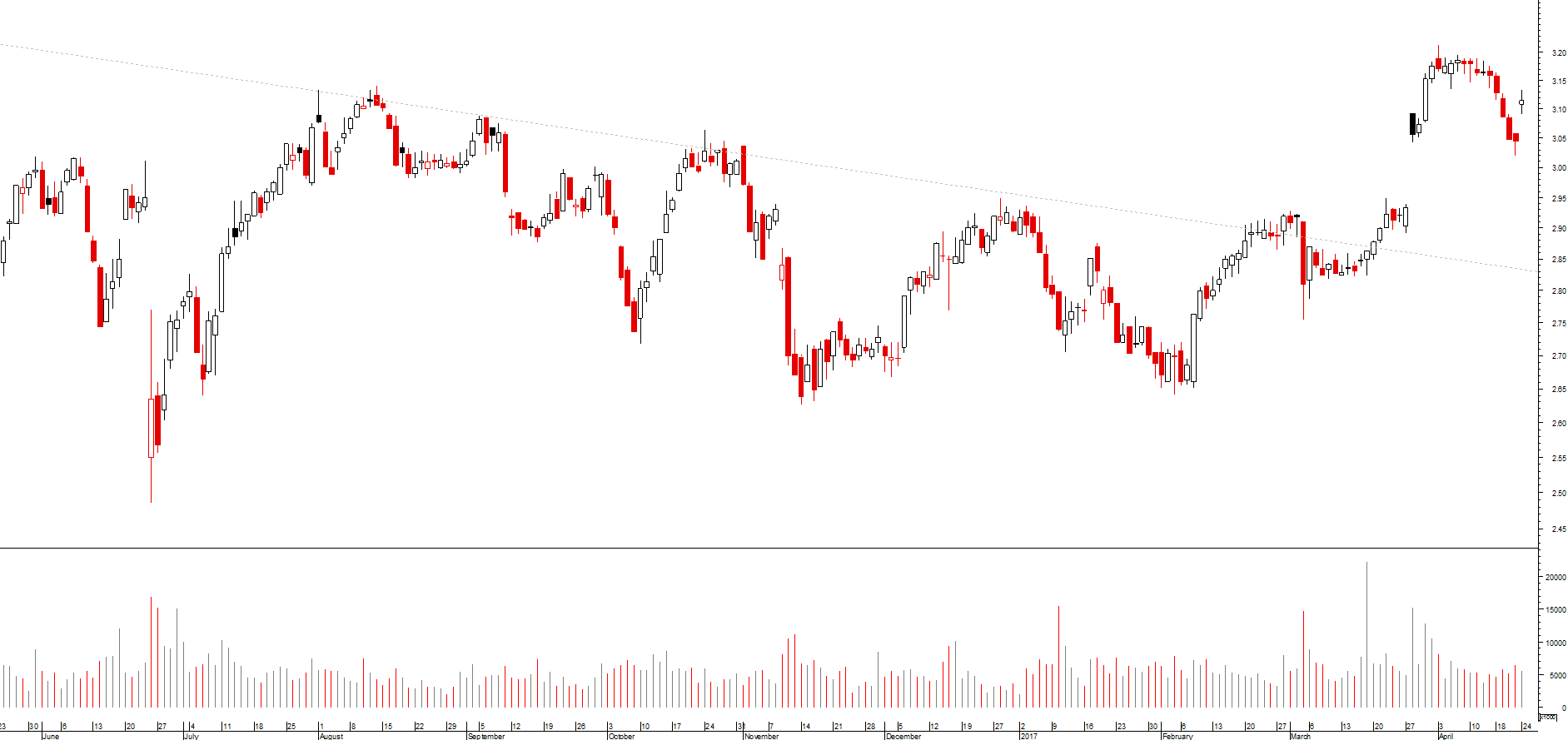 Alguém pode confirmar qual o suporte atual? Receio estar num ponto em que pode muito facilmente descer para os 2.8/2.9, fechando o GAP do mês passado.