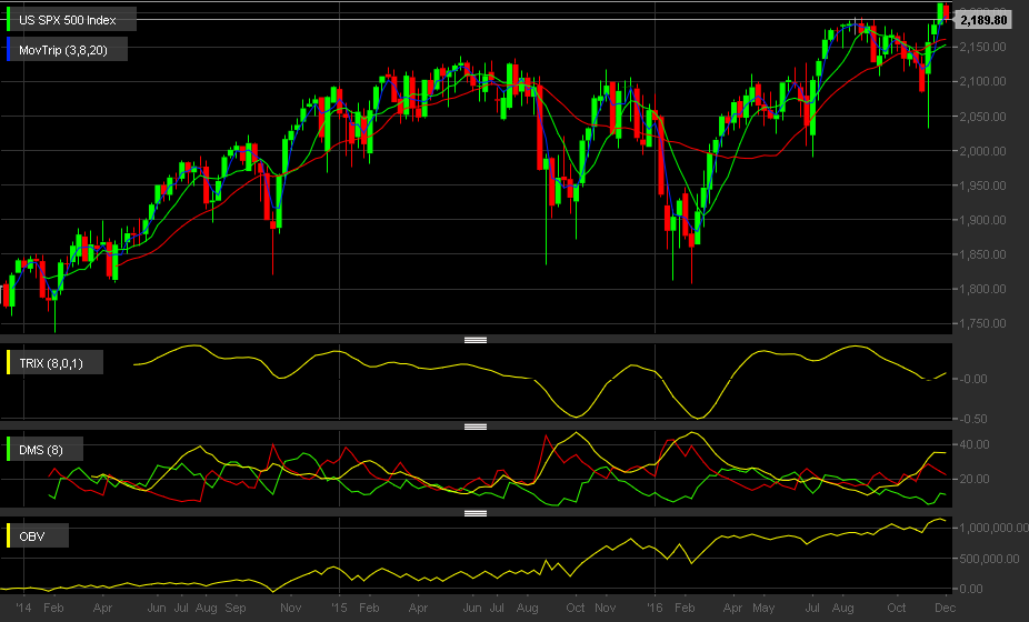 Ficámos com um padrão feio no topo,temos o trix indeciso a cheirar o eixo 0,adx vendido,OBV depois de marcar topo a sugerir correcção.Temos as MMs de 8 e 20 entre 2150 e 2160pts que podem "segurar" temporariamente o preço.