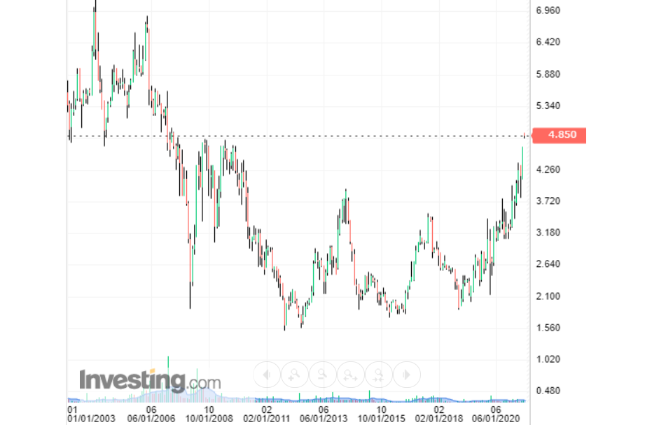 Segundo melhor desempenho do psi 20 em 2021 (+38%) e com uma subida consistente desde os mínimos de Novembro de 2018, quando estava a aproximadamente 1.89€ (o preço actual é 4.44€). .