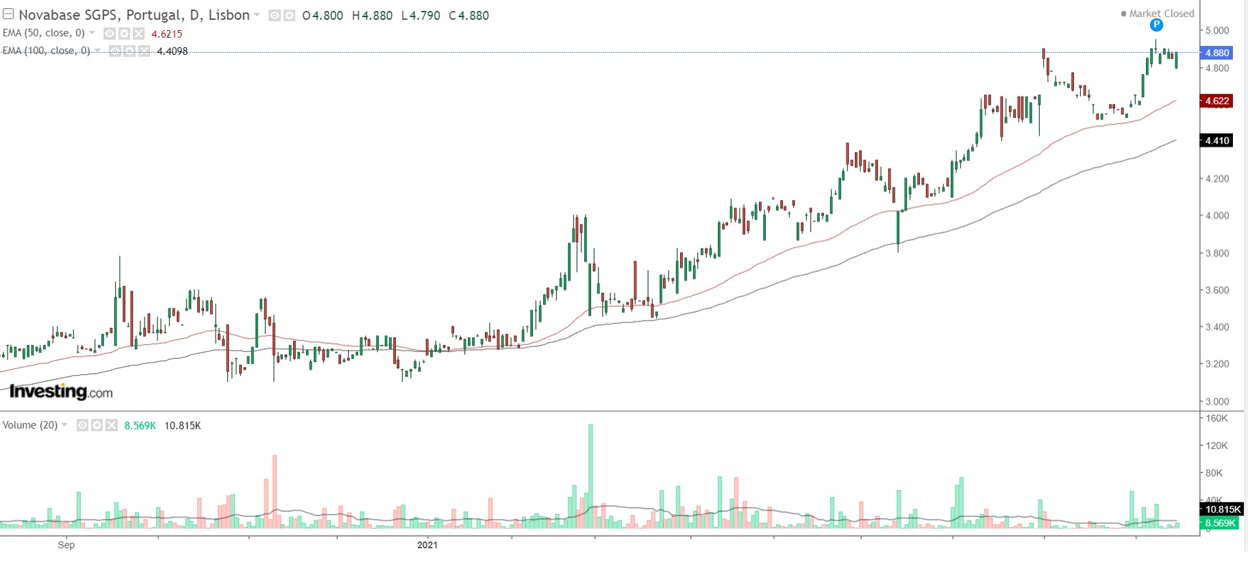 A Novabase, desde inicio do ano, já valorizou ~+20%. Está em máximos de 10 anos.