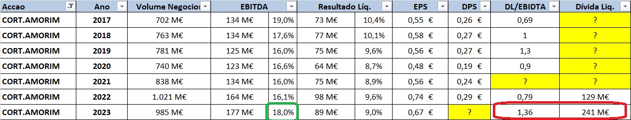 O que tem que ver o ebitda com a dívida liquida? Aparentemente a empresa está numa fase de investimento... ou ent estamos parante um acrescimo no inventário. A cortiça é colhida numa época em particular sendo depois utilizada ao longo no ano...