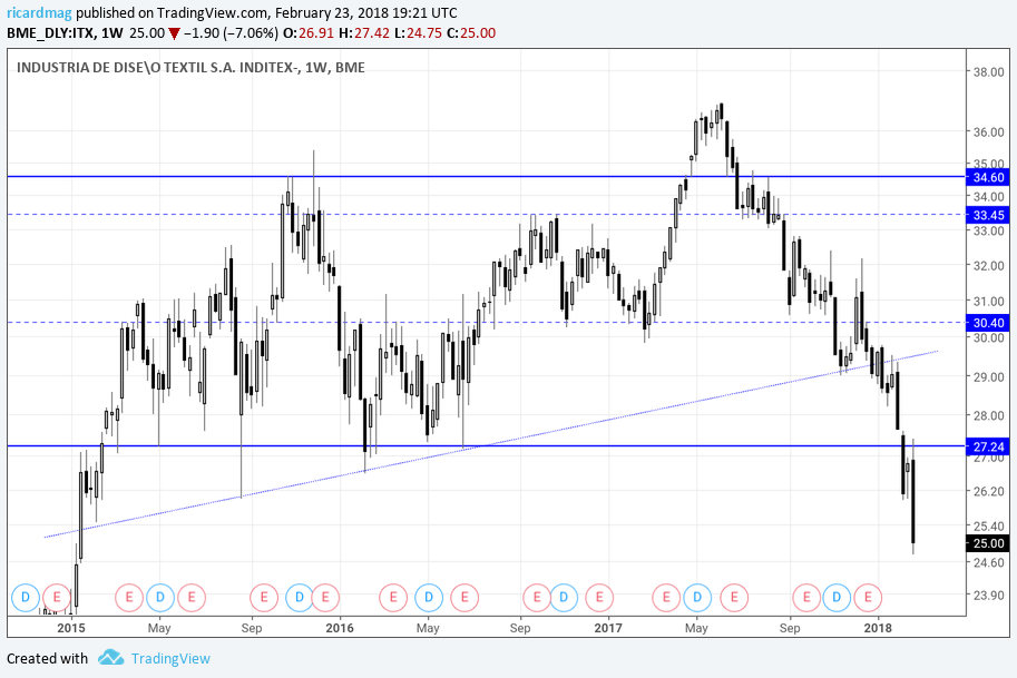 Dito isto, qualquer noticia negativa tem muito impacto sobre uma ação do setor. Por vezes (muitas vezes) são exageradas. No caso da inditex em particular é uma ótima empresa, parece-me preparada para o futuro, mas apesar das descidas no passado recente ainda tem múltiplos condizentes com os crescimentos mais adaptados ao antigamente que aos dos dias de hoje. Daí ter feito a comparação com a H&M que foi severamente castigada nos últimos tempos. Enquanto a Inditex caiu 30% desde máximos, a H&M já leva mais de 60%. Isso levou a que ficasse com múltiplos mais interessantes. Se a Inditex fosse para múltiplos desses (PERs atuais e futuros na casa dos 14 e EV/EBITAD na casa dos 8), era um BUY certo