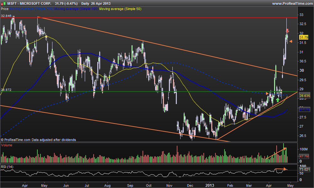 Elias Escreveu:A Microsoft, esse gigante adormecido, parece estar a acordar. A acção tocou hoje nos 38,08 - é preciso recuar a Junho de 2001 (seta vermelha) para ver a MSFT neste valor. Se for um cêntimo mais acima, fica em máximos de 13 anos e meio.