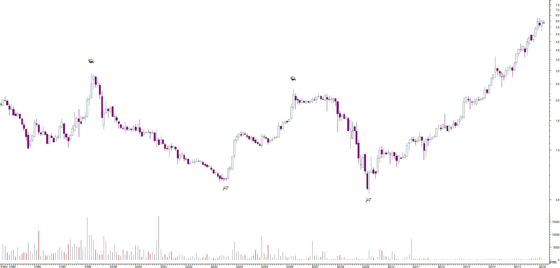 apenas duas notas: o bull market é evidente a partir de 2009 e, segunda nota, detecto um possível BARR em formação