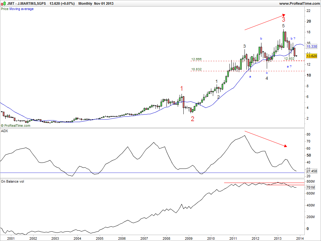 Excelente HJOR. A JMT acompanhou nos últimos anos o bull do DAX, S&P, etc quase como uma originalidade no meio de um PsI em depressão. Não deixa de ser curioso pensar para onde se desenvolverá/onde poderá terminar a sua onda 5, o que talvez signifique qualquer coisa para a duração do (ainda incipiente) bull do Psi.
