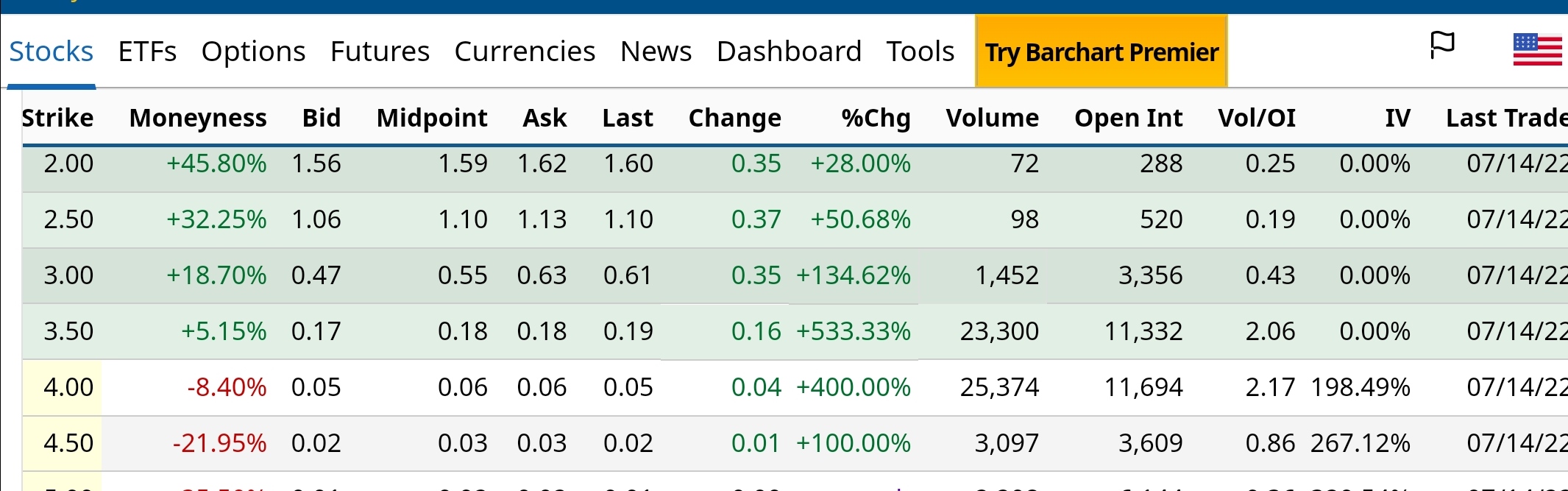 Tilray Call Options: termina dia 15/07/2022