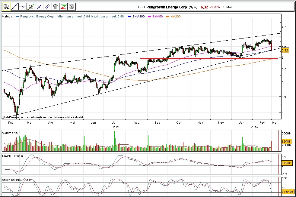 A PGH - Pengrowth Energy corp, é uma empresa canadiana do setor energético (petróleo e gás natural) cotada em Nova York, com um market capital de cerca de 3.50B e que distribui dividendos mensalmente de 0.04 usd por ação desde 2012, com uma Yield atual de 6.47% segundo site bloomberg.