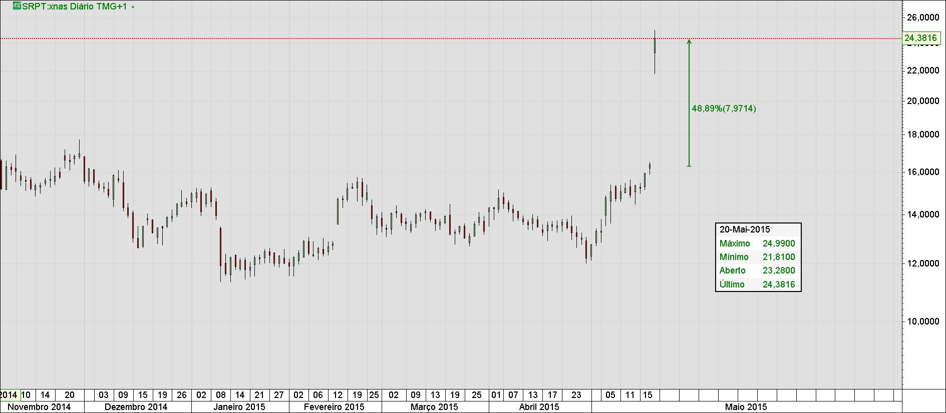 Nada que o stop não resolva vai da execução da operação, poderemos sempre ter o stop loss a 3/5/10%, é a escolha do freguês além de sabermos que sempre apos o pico máximo do Gap-up, há uma correção imediata do gap e quem sabe até onde vai, neste caso o short vai lindamente, opera-se nos dois lados . Foi até os 110% e recuo até os 45%. O que se diz aqui é que as biotecnológicas são e serão sempre os melhores gap-ups e gap-dows do mercado .