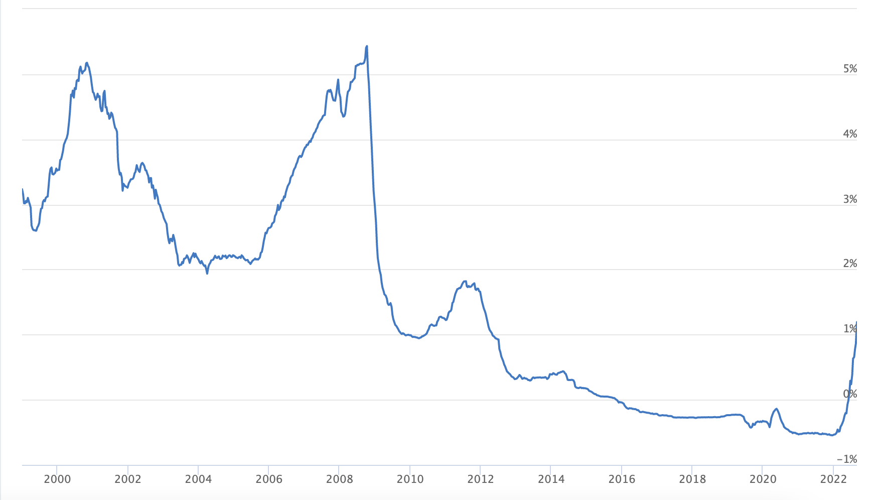 Atual escalada das taxas euribor, nesta imagem o exemplo da de 6 meses.