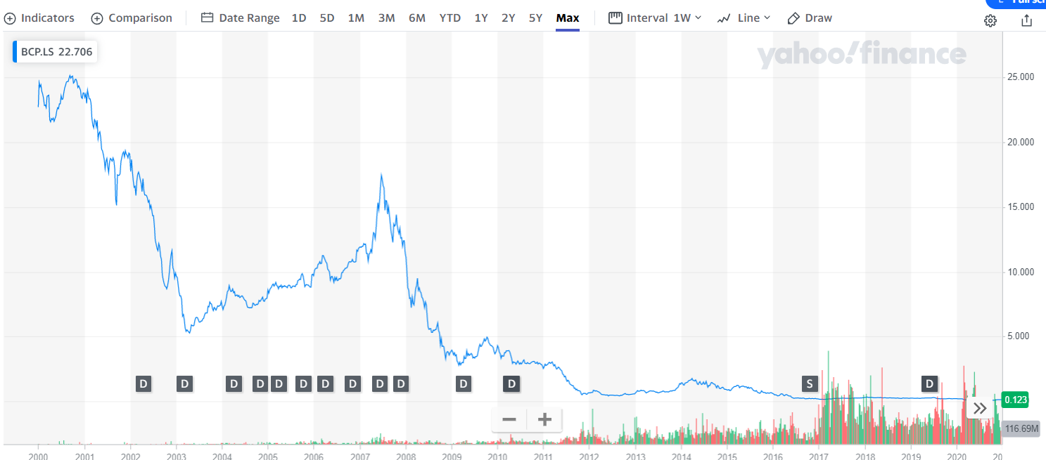 Se fores mais atrás o BCP em 2001 chegou aos 25€.