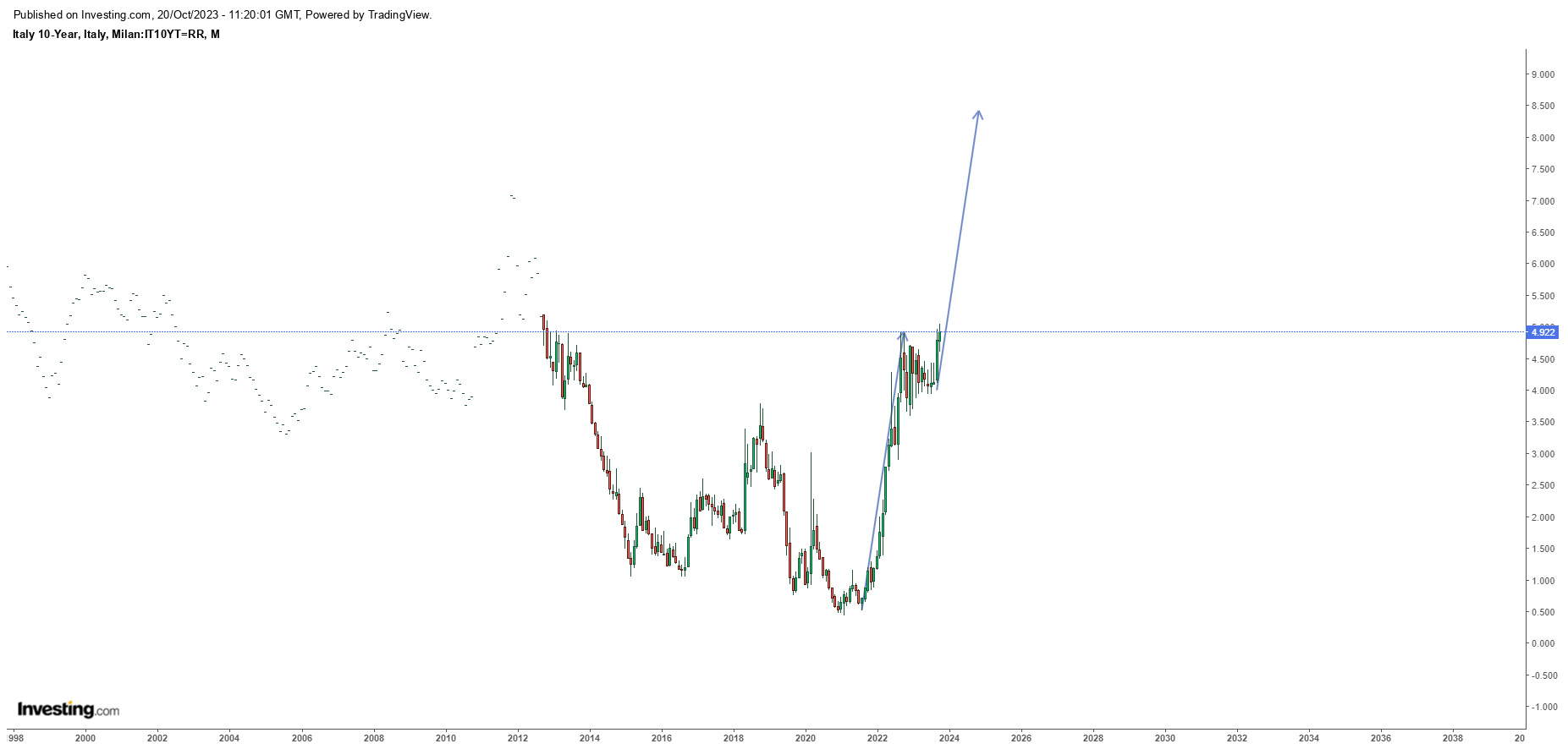 Há muito que venho a dizer que a situação é insustentável (sim, a Itália deve estar a ser "segurada" por alguém) para muitos. As dívidas são demasiado grandes para os juros atuais. Estes, por seu turno, são perfeitamente compatíveis com o cenário de inflação.