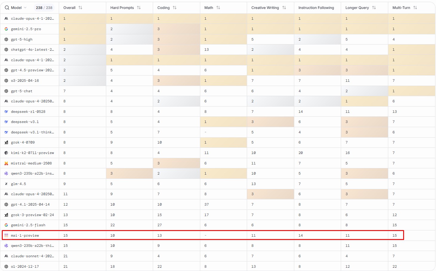 Para já, no leaderboard da LMArena, a coisa não está muito famosa em termos de popularidade e o modelo da Microsoft encontra-se até atrás do Grok 3, o modelo anterior da xAi, bem como atrás da versão anterior do ChatGPT e de algumas chinesas open source, não se destacando em nada segundo a opinião dos avaliadores (não é o começo mais auspicioso diria eu).